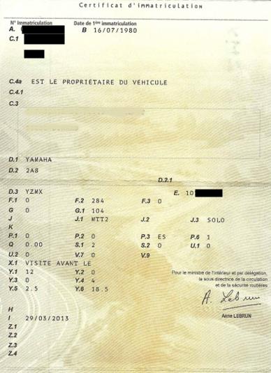 Pour les modèles plus anciens : Le numéro de série peut comporter moins de 17 caractères. Dans ce cas, relevez également la mention D.2 sur votre carte grise.